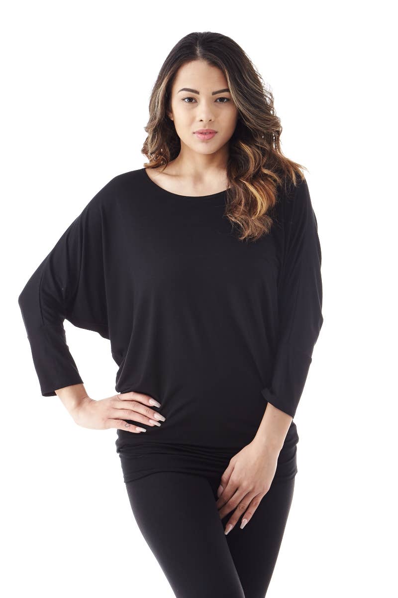 SI-536 Three-Quarter Sleeve Dolman Top (95% Rayon, 5% Spandex)
