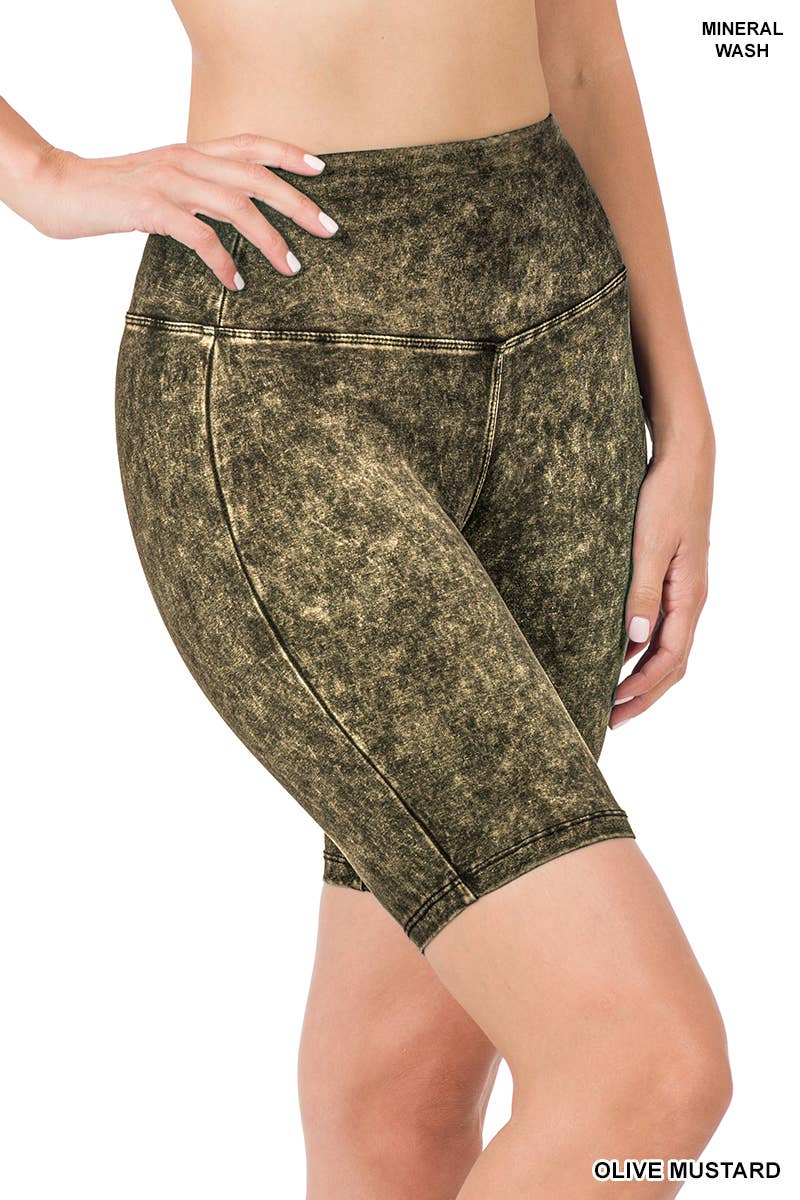 SI-21357 Mineral Wash Wide Waistband Short Leggings (95% COTTON 5% SPANDEX)
