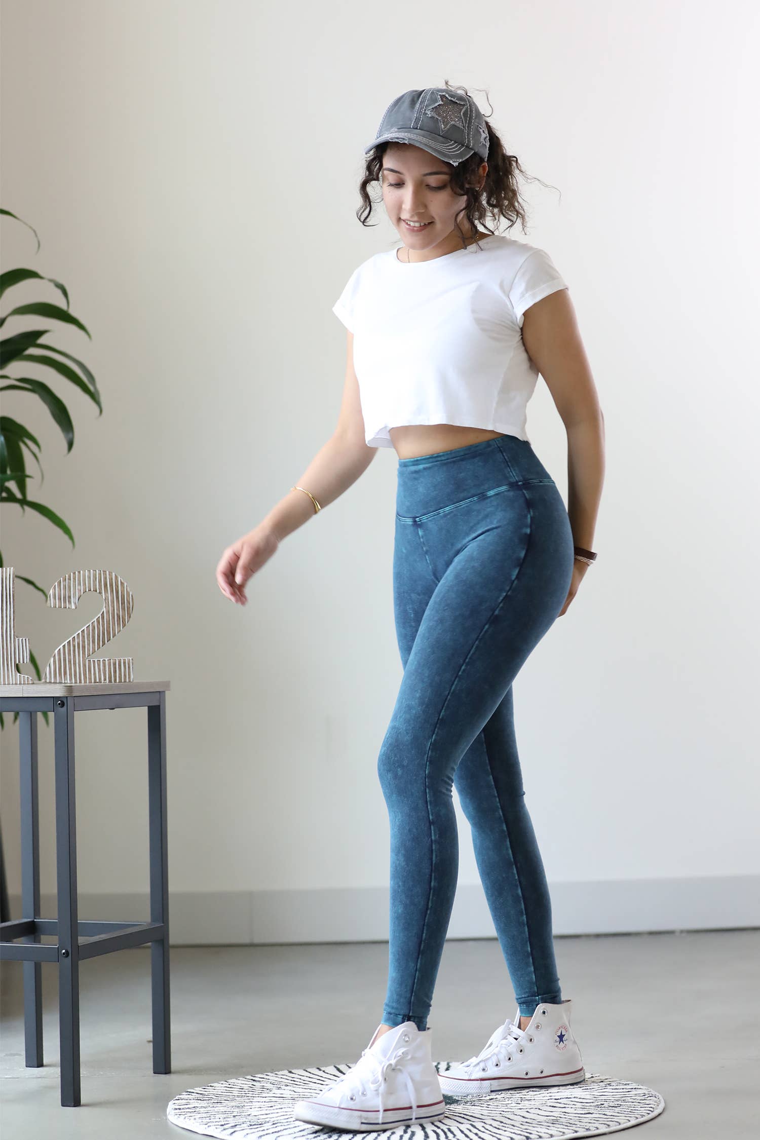 SI-10868 Mineral Wash Fold Over Waist Leggings (92% COTTON 8% SPANDEX)