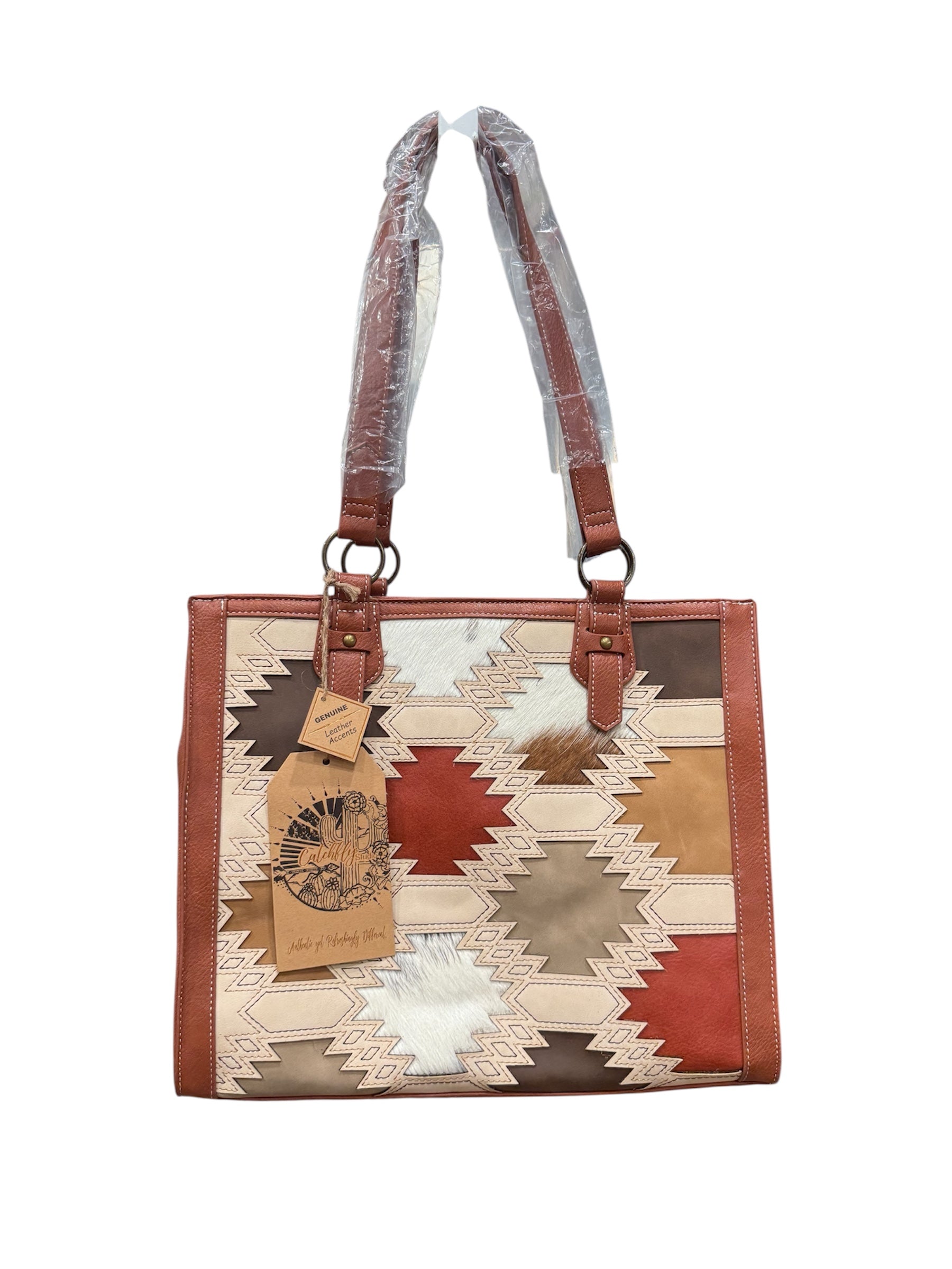 Catchfly Women's Southwestern Color Block With Brindle Inlay Tote Purse - Brown