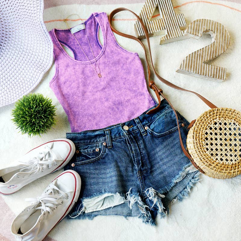 SI-23947 Mineral Wash Bodysuit W/ Snap Buttons (95% COTTON 5% SPANDEX)