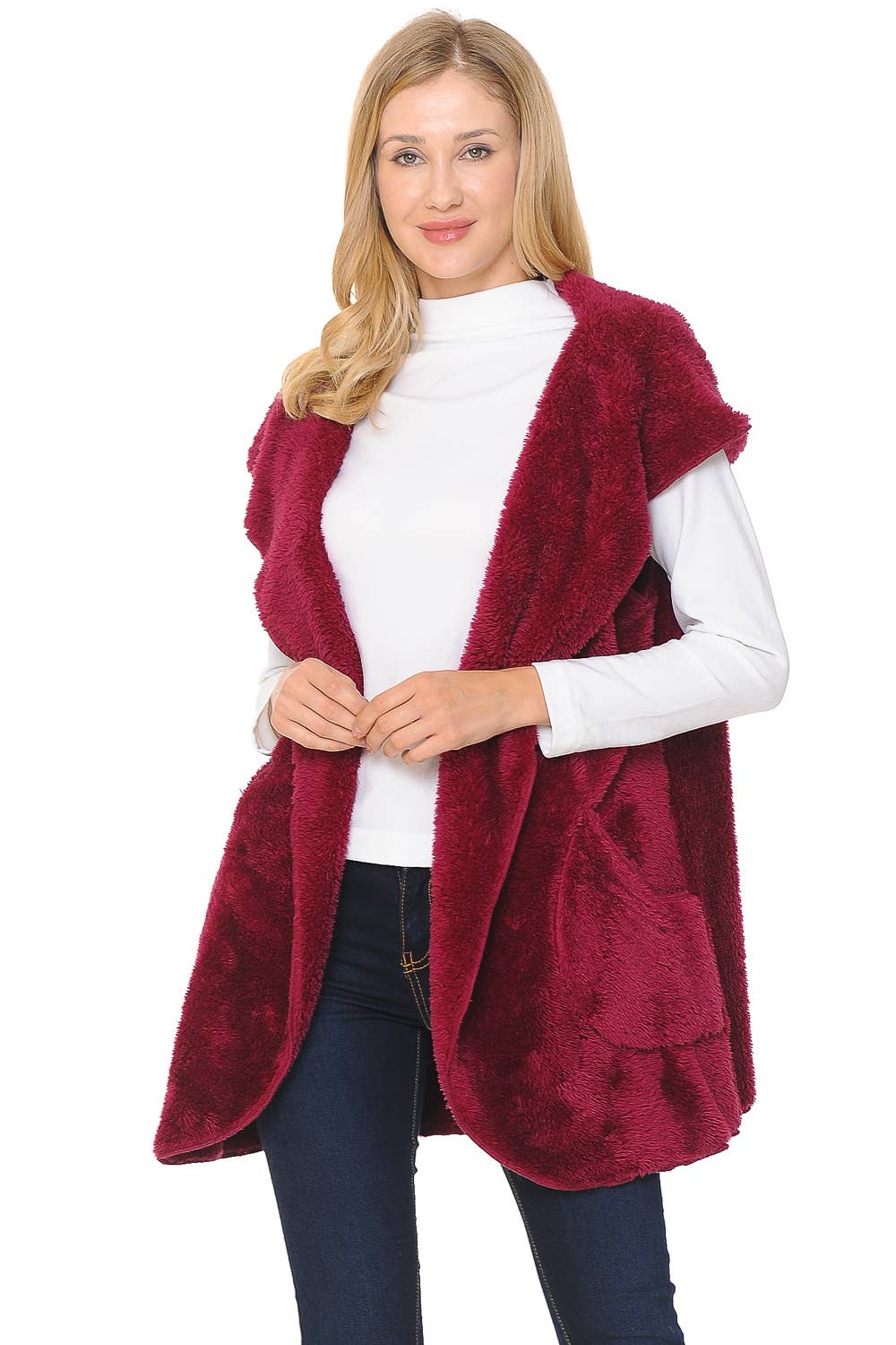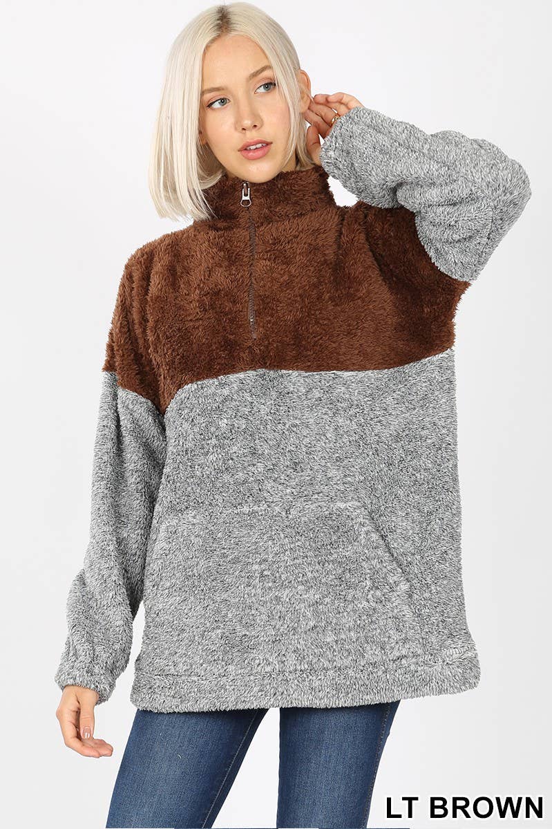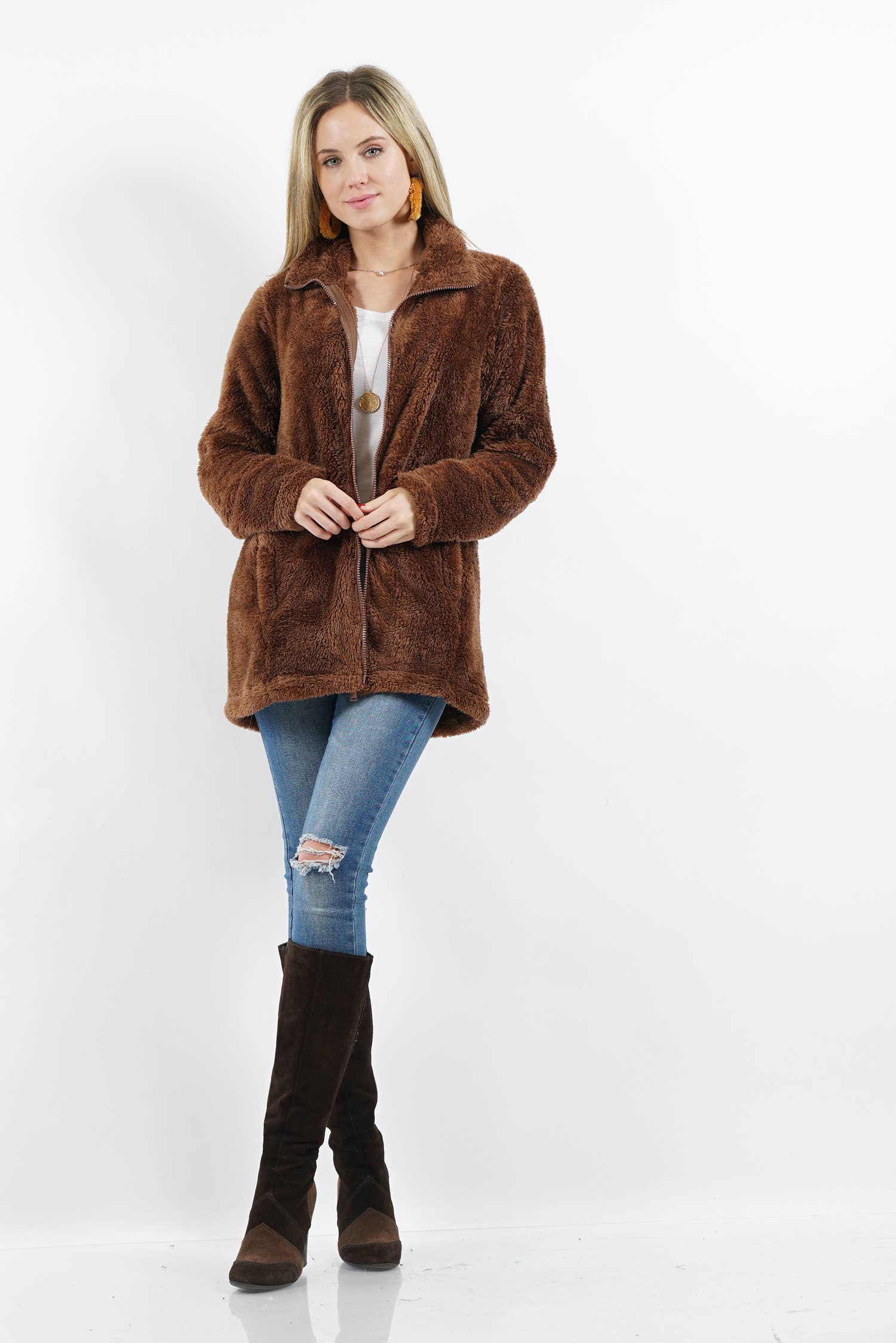 SI-15475 Faux Fur Zipper Front Jacket With Side Pockets (100% POLYESTER)