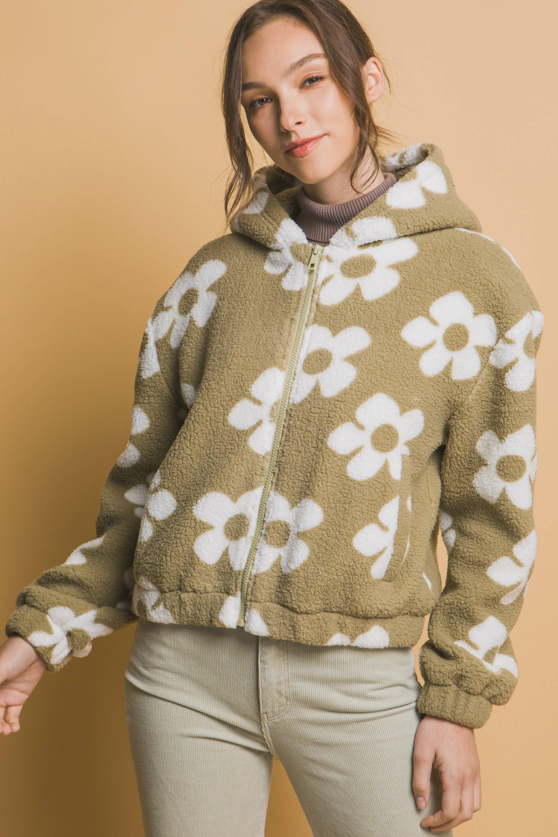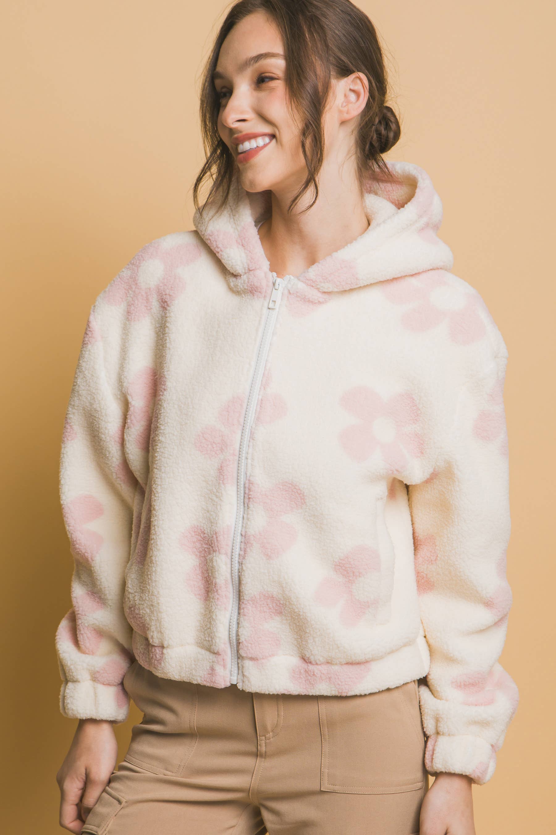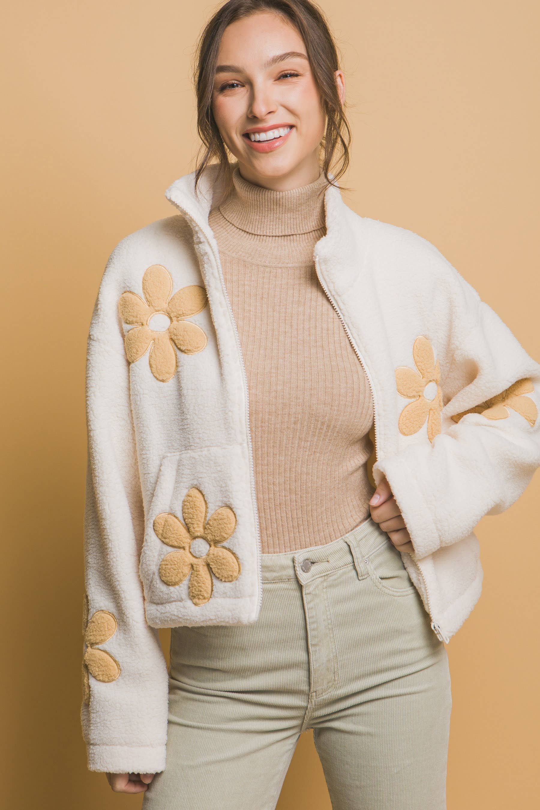 SI-15475 Faux Fur Zipper Front Jacket With Side Pockets (100% POLYESTER)