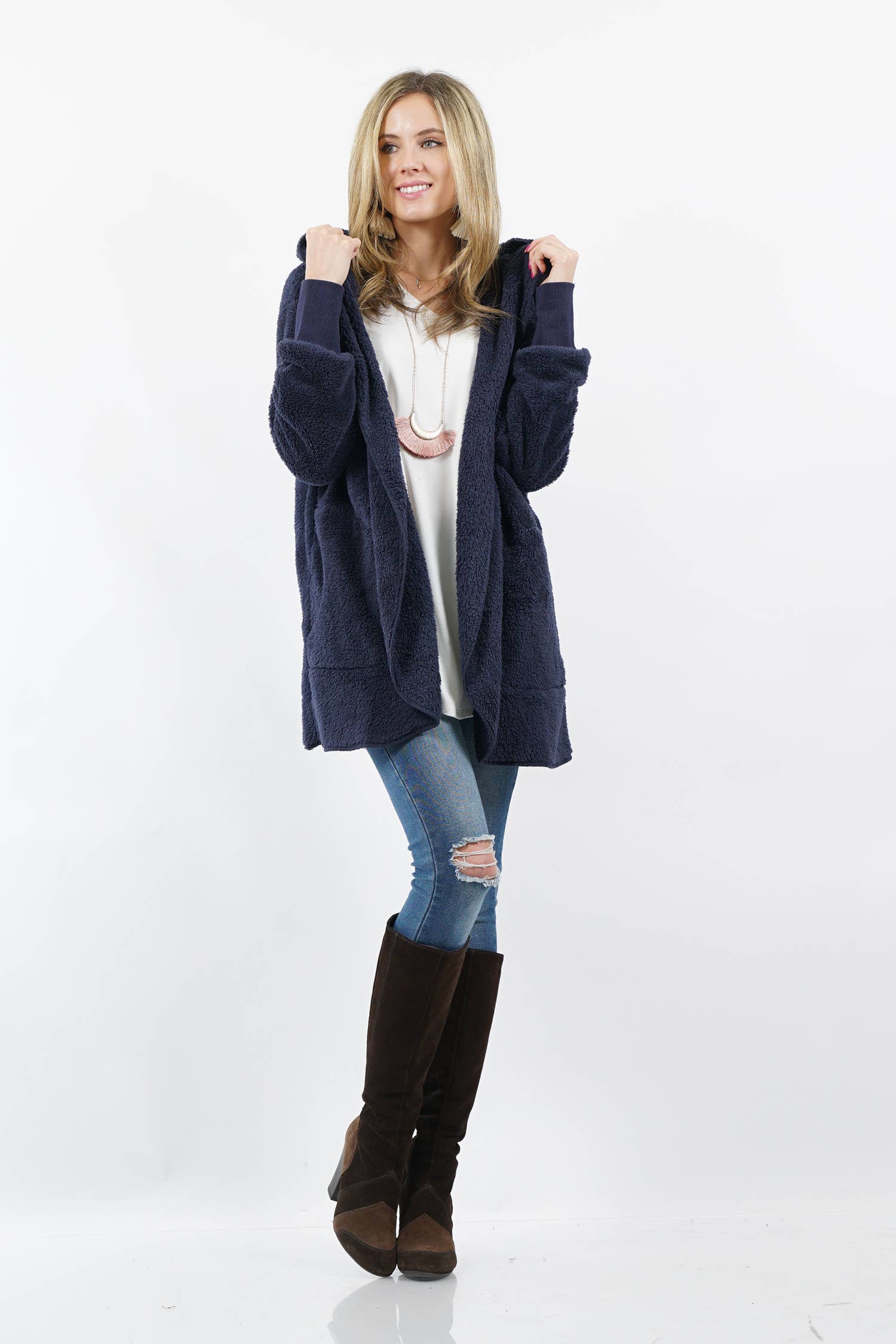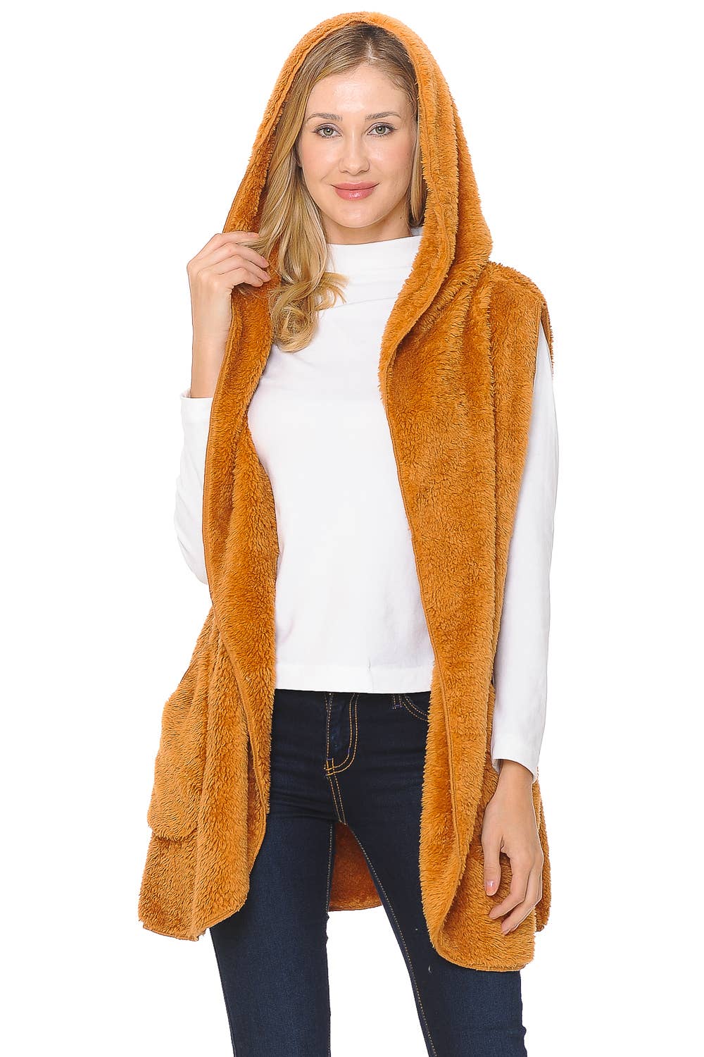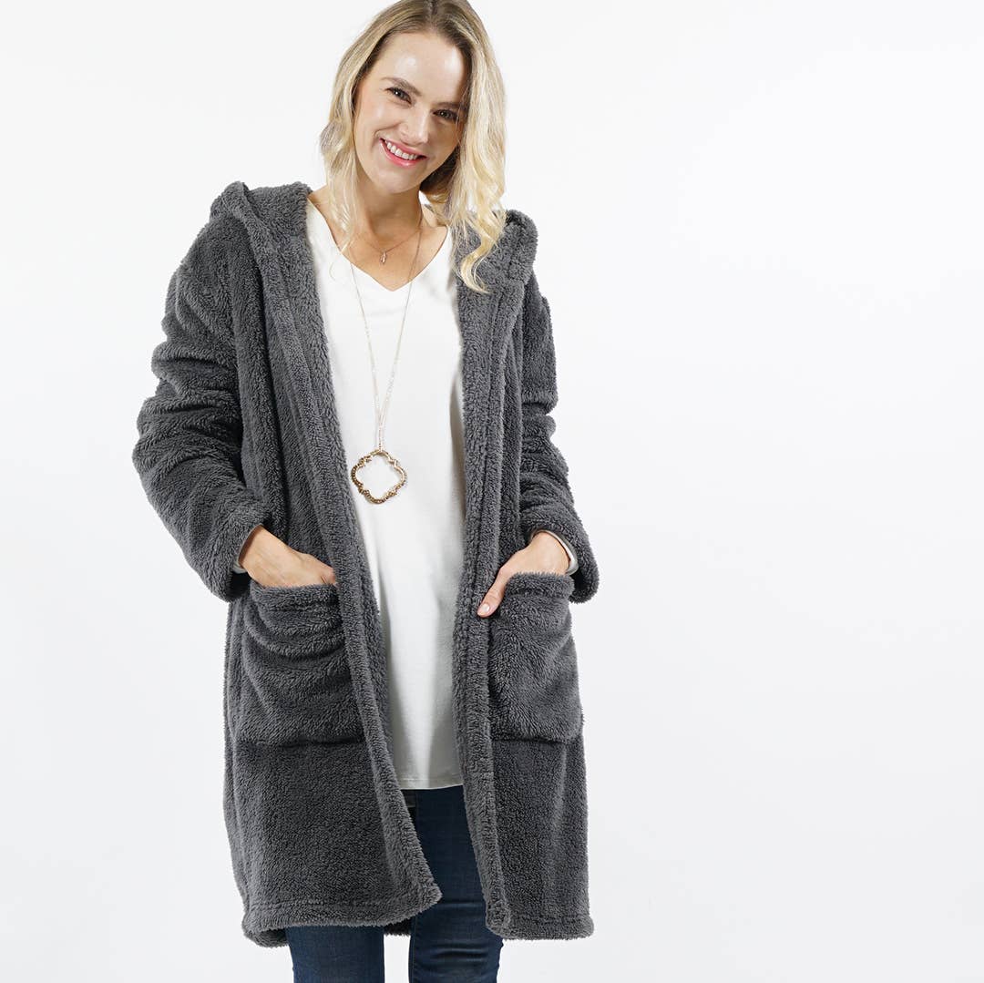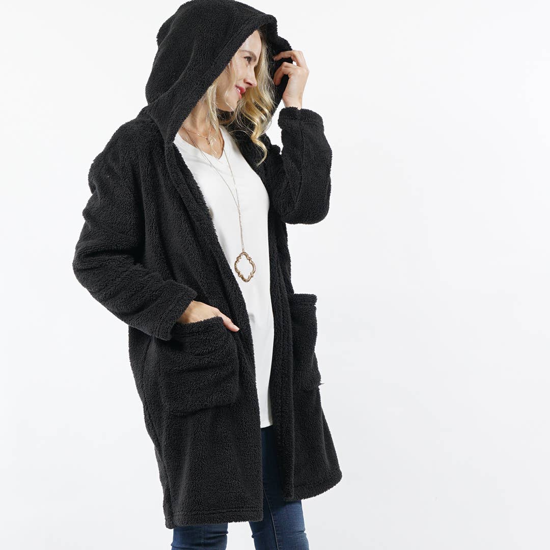 SI-15245 Faux Fur Cocoon Hoodie (95% Polyester, 5% Spandex)