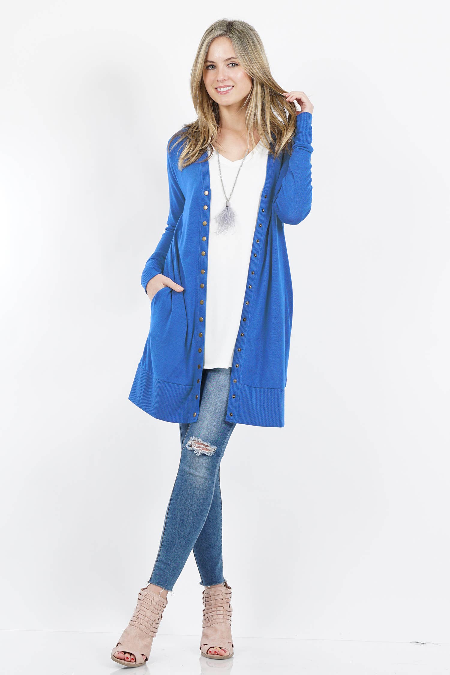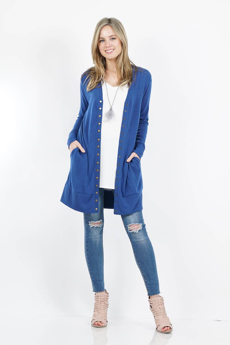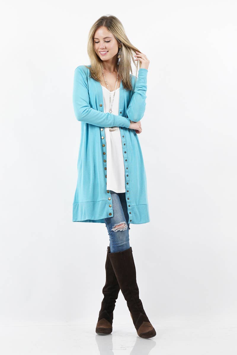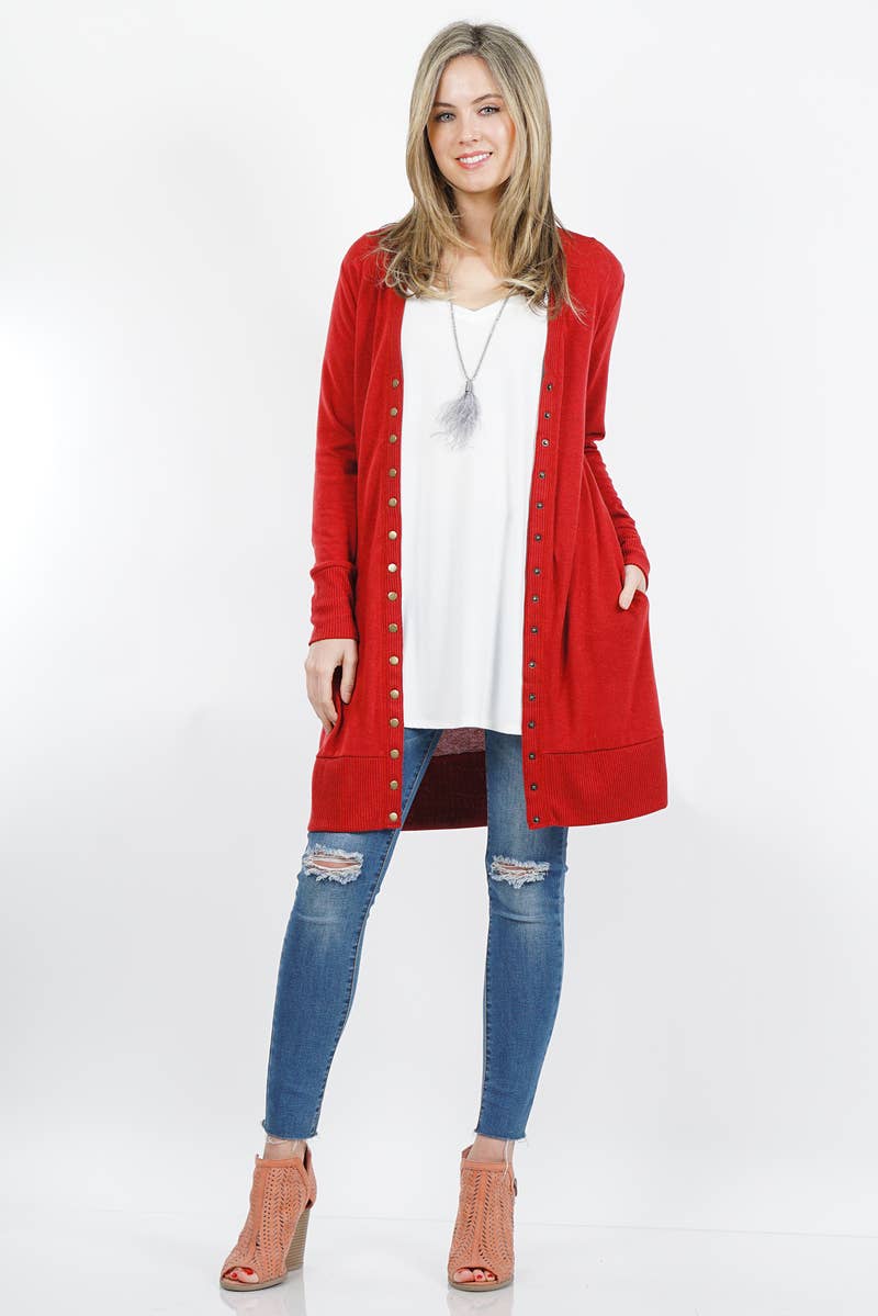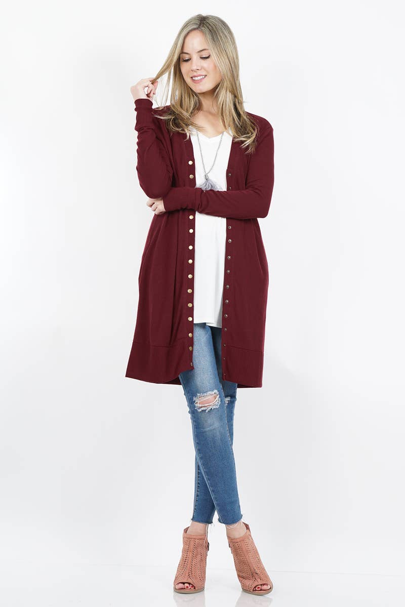 ..SI-25425 Thigh Length Snap Button Sweater Cardigan