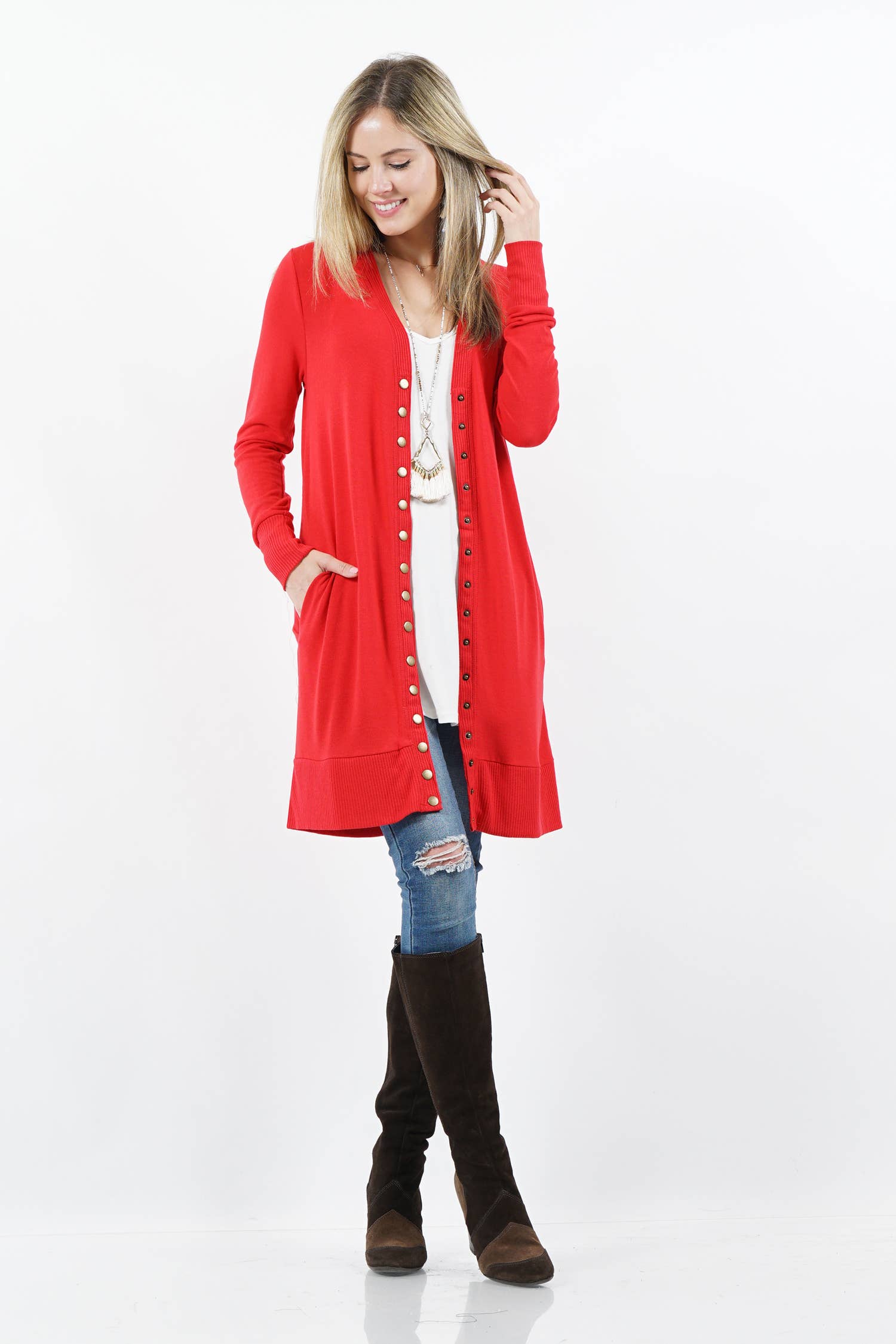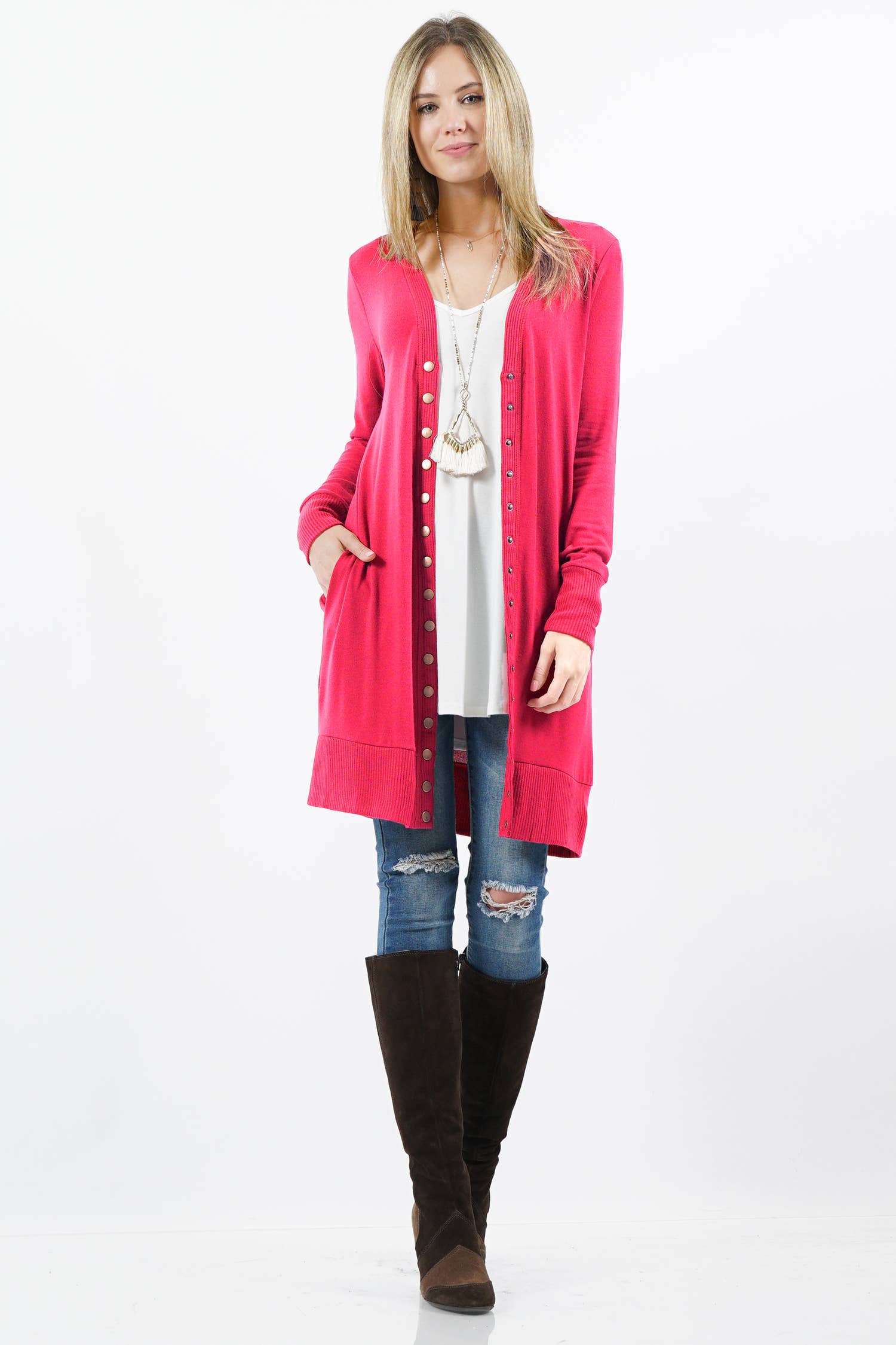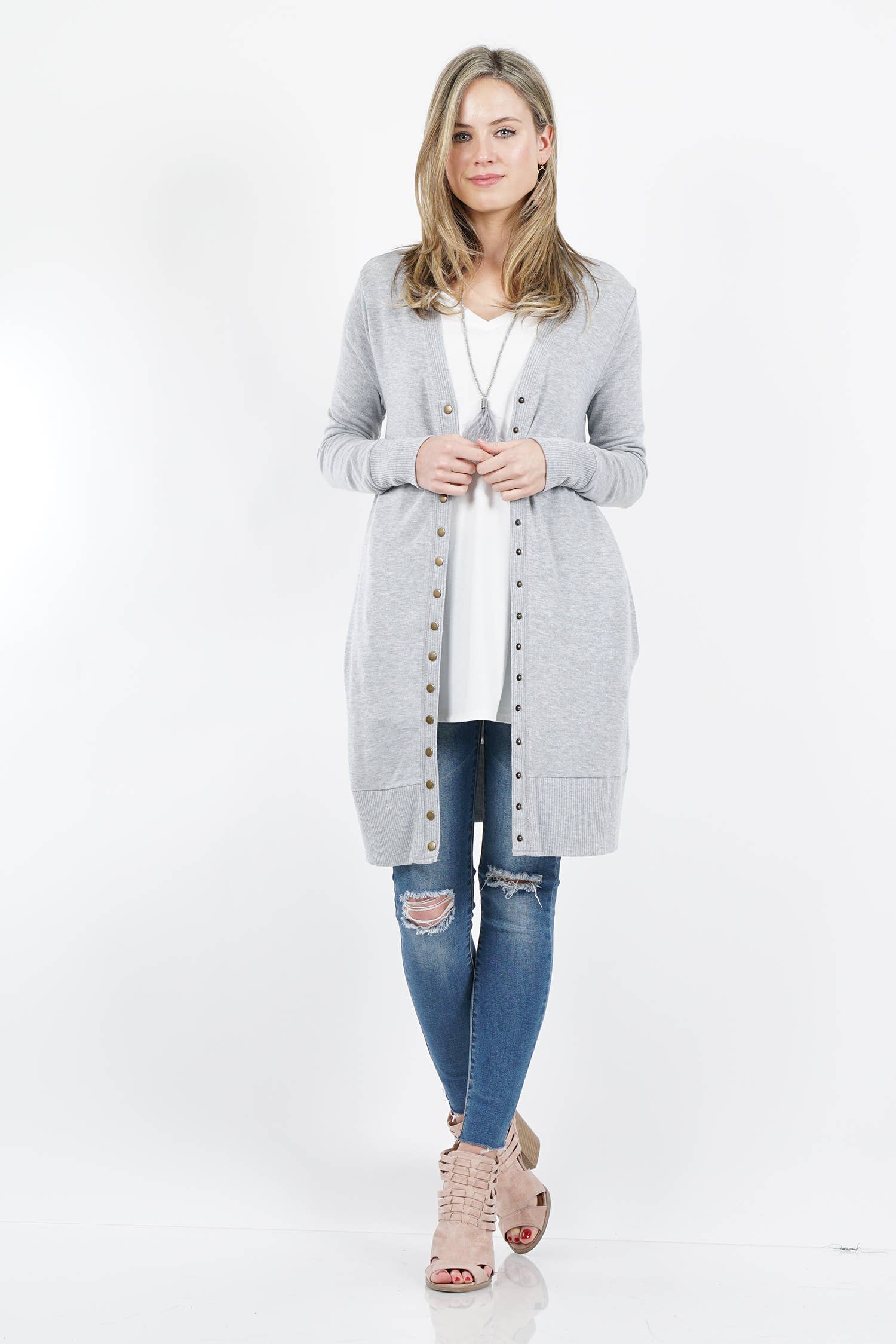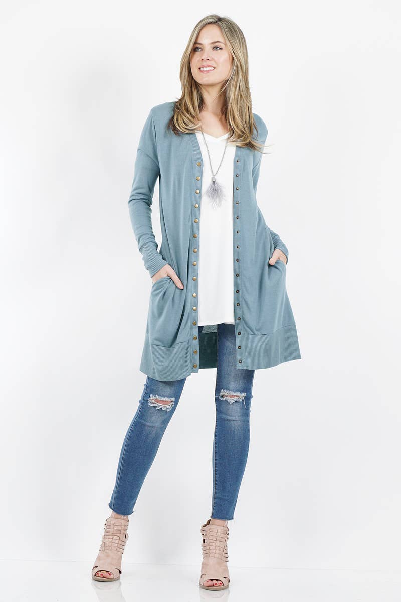 ..SI-25425 Thigh Length Snap Button Sweater Cardigan