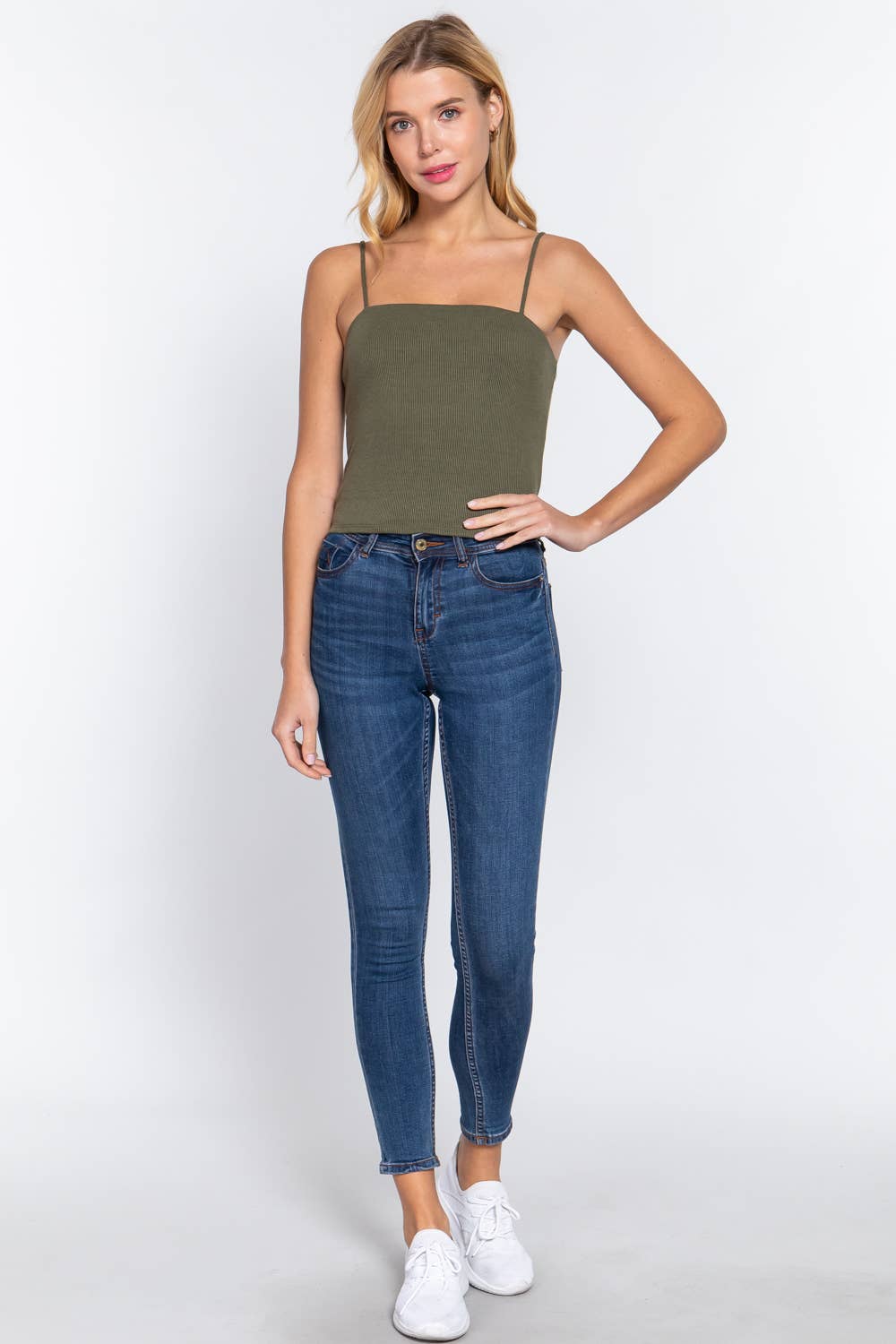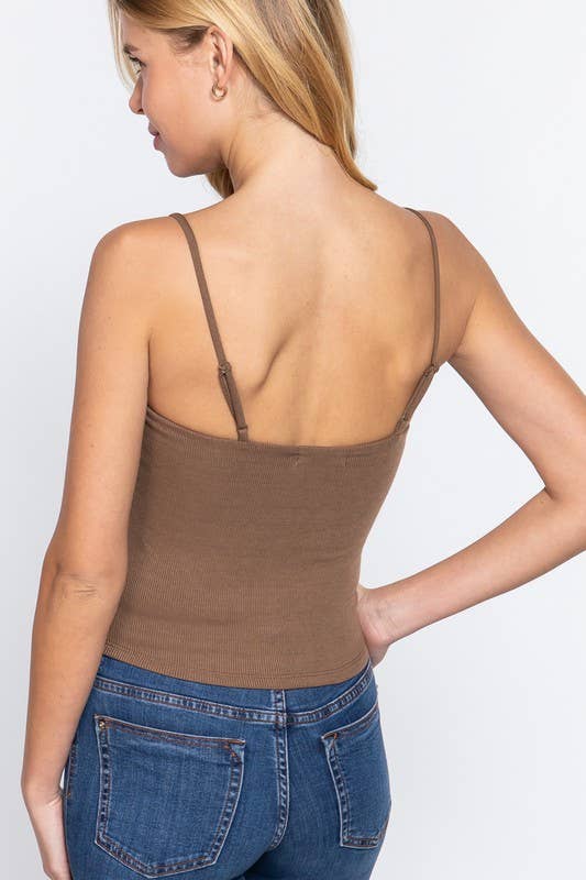 Straight Neck Two Ply Rib Knit Cami Top
