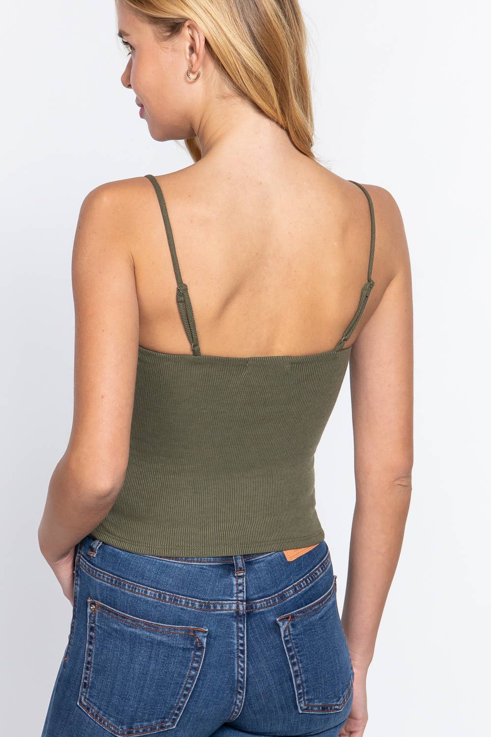 STRAIGHT NECK TWO PLY RIB KNIT CAMI TOP