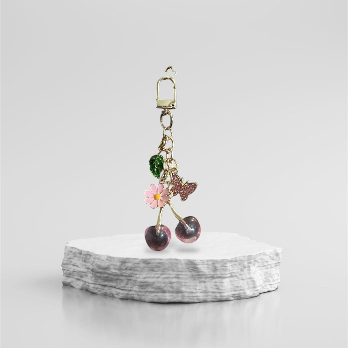 Stylish Purse Keychain Accessories Cherry with Butterfly