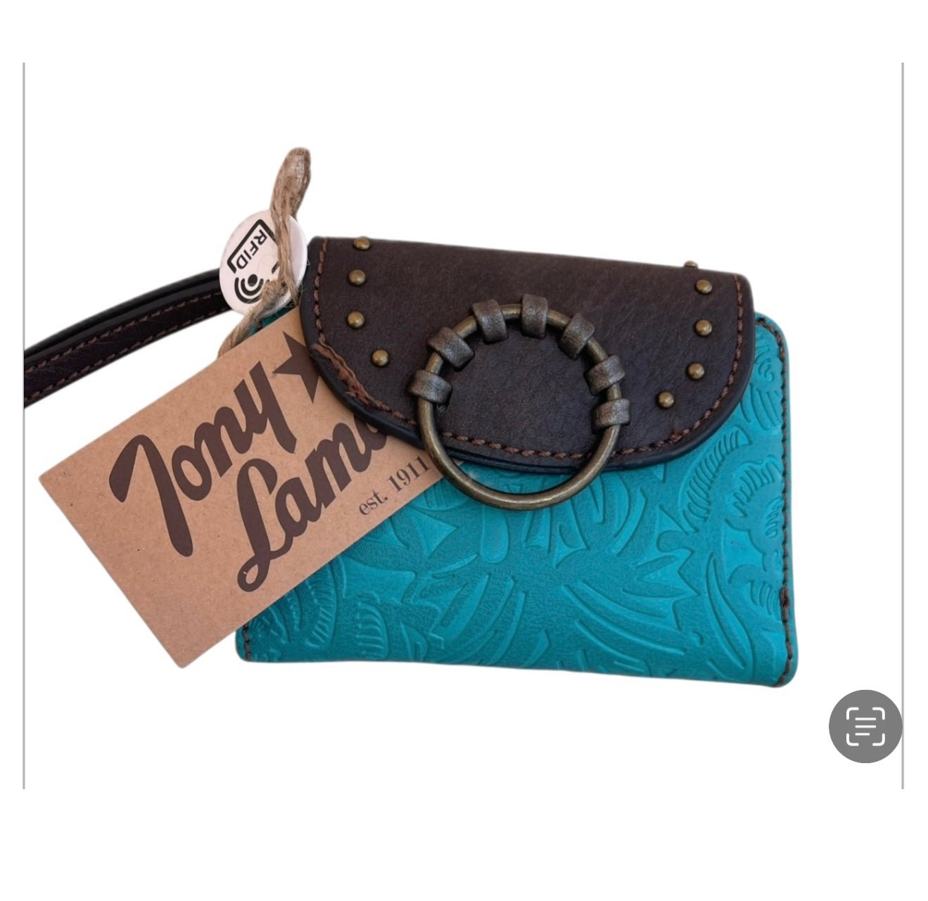 Tony Lama Western Turquoise Tooled Wristlet Wallet Studs Floral