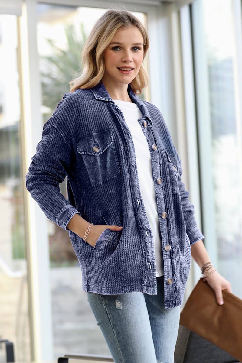 SI-24511 Cotton Waffle Acid Wash Oversized Shacket